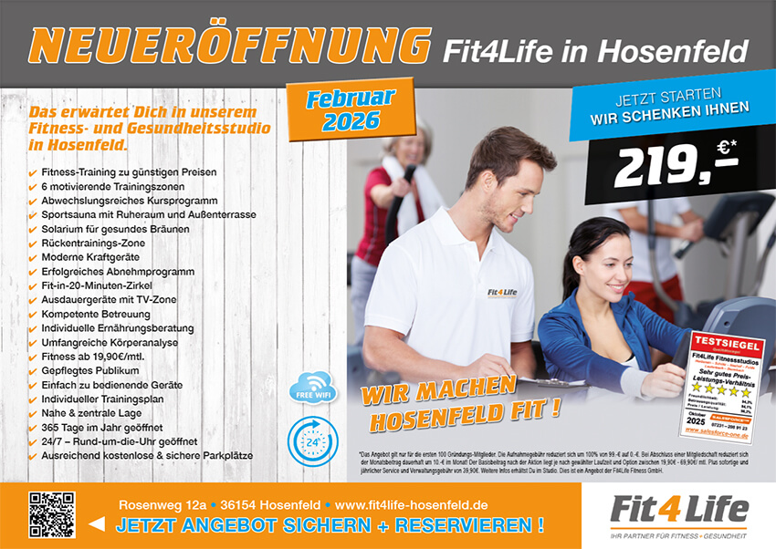 Das Fit4Life Hosenfeld ist Dein Partner für Fitness + Gesundheit. Wir sind rund um die Uhr für Dich da. Lerne uns jetzt kennen.